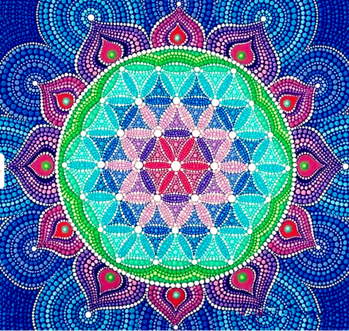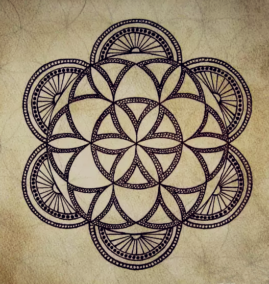 “神圣的符号持有宇宙间特殊的频率,会在其周围创造出能量场”,从事自然疗法的丹尼这样说。在一次kudalini冥想工作坊我遇到了来自以色列的治疗师丹尼尔,他已经在印度跟随一位萨度(印度教苦行僧)学习并从事自然疗法15年。我留意到他的水晶阵下面一直摆放着生命之花的符号。“这是为了保持并激励水晶的能量”丹尼这样解释。